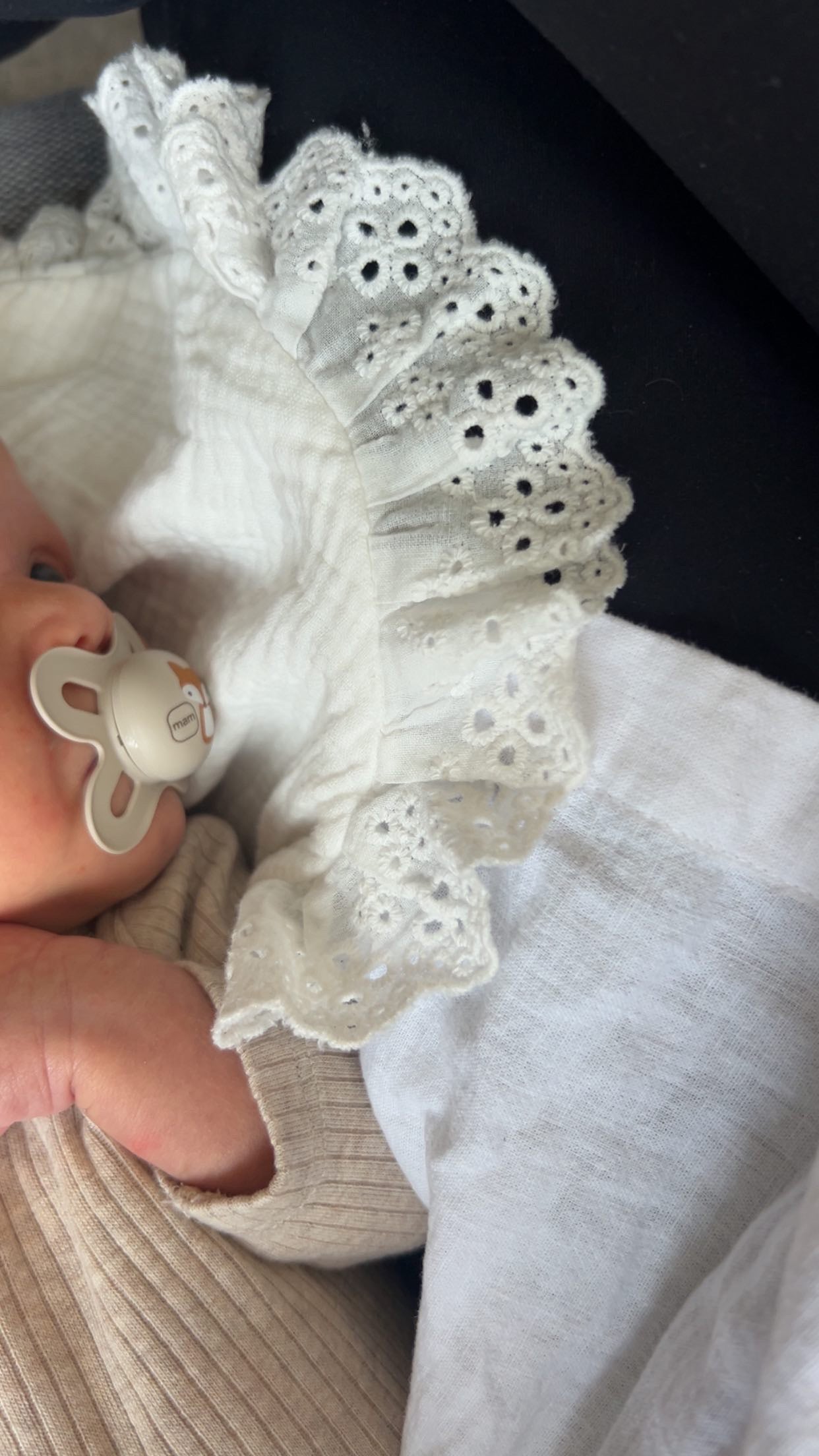 Under hodet til babyen i sofaen, babygym, moonboon, vogn eller babynest.