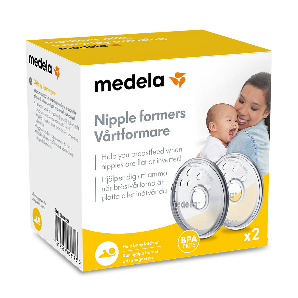 Har du flate eller innsunkede brystvorter som gjør det vanskelig for babyen å få tak? Medela Brystvorteformere gir en trygg og skånsom måte å forberede brystene for amming.