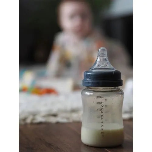 Flasken er laget av BPA-fri, matsikker polypropylen og silikon, og tåler oppvaskmaskin (øverste hylle, maks 65 °C). Den er også fullt kompatibel med Lola & Lykke Smart Elektrisk Brystpumpe, slik at du enkelt kan pumpe og mate uten å bytte beholder.