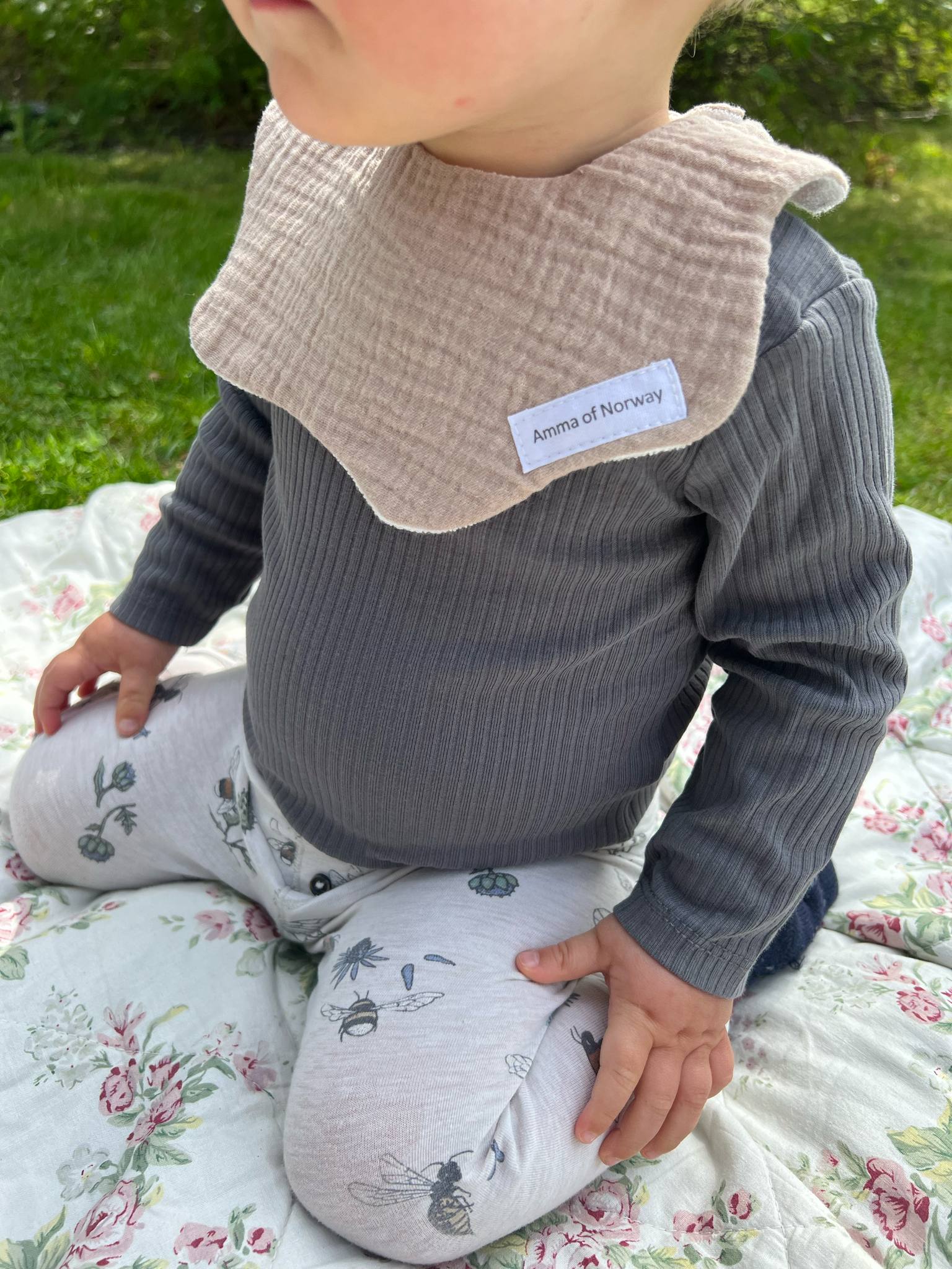 Hold barnet tørt og komfortabelt med vår praktiske og stilrene smekke med vanntett underside. Se også våre gulpekluter i samme serie.